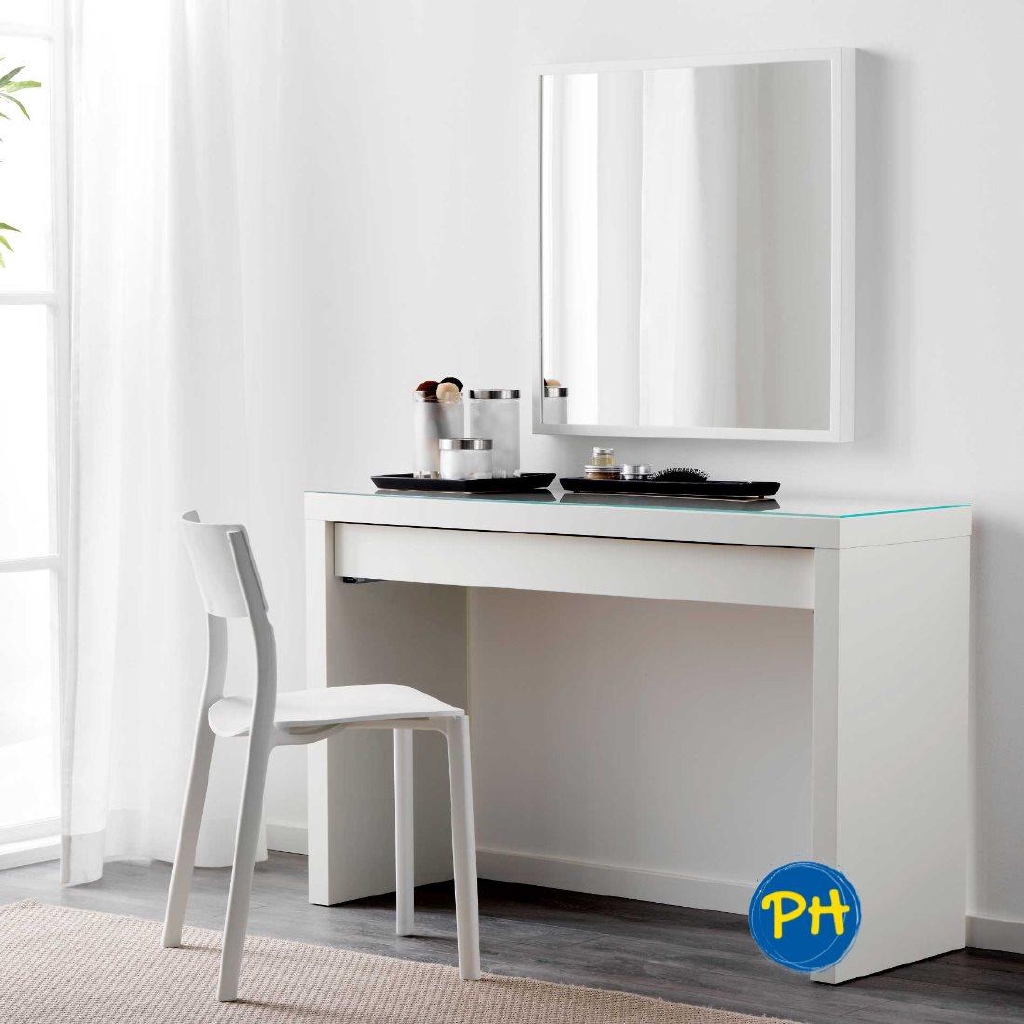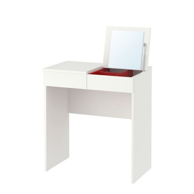Work it as a desk synergise between a hard working desk and a dressing table get one with a sturdy surface and adequate space for stashing your bits plus a comfortable chair for grafting relaxing or simply pampering. Place your bedside lamp by the dressing table and if the table is too small for a freestanding vanity mirror simply hang one on the wall instead. So whether you re looking for a dressing table with an antique twist or prefer a modern dressing table with mirror introducing this iconic piece of furniture to your bedroom is never a bad idea. Ikea dressing table 41x78cm white.